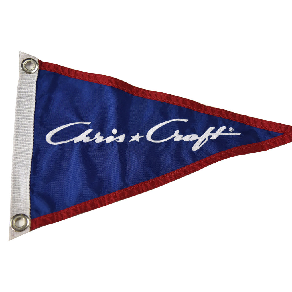 Deze custom Chris-Craft wimpel wordt gebruikt op de Chris Craft modellen tot 2019. Deze vlag heeft 2 doorvoertules die gebruikt moeten worden om aan een vlaggenmast te bevestigen.